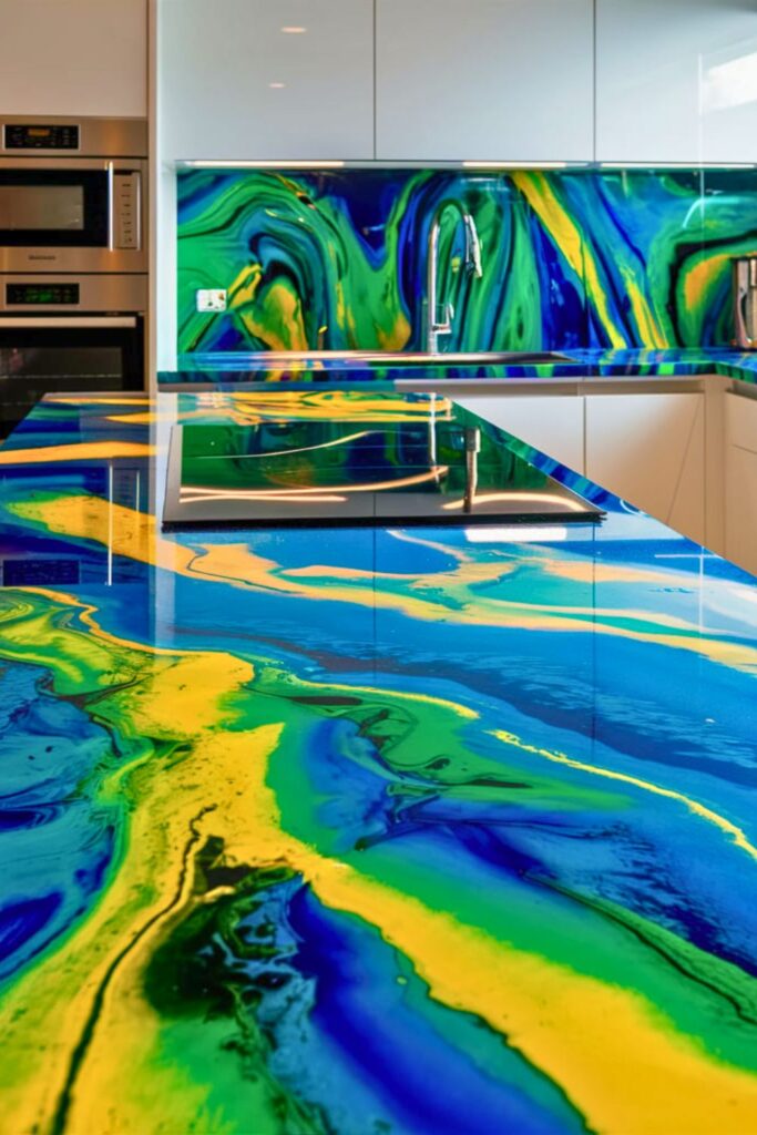 Transform your countertop into a captivating piece of art with epoxy resin. Mix epoxy with pigments and pour it over your existing surface to create stunning, swirling patterns or encapsulate objects such as shells or photographs.