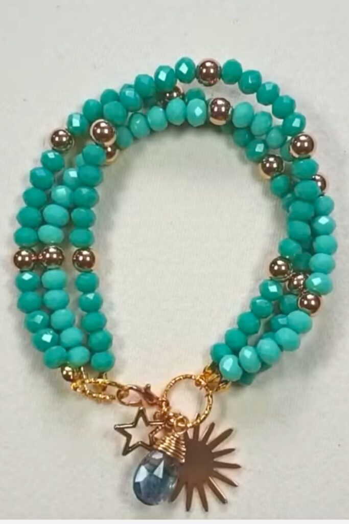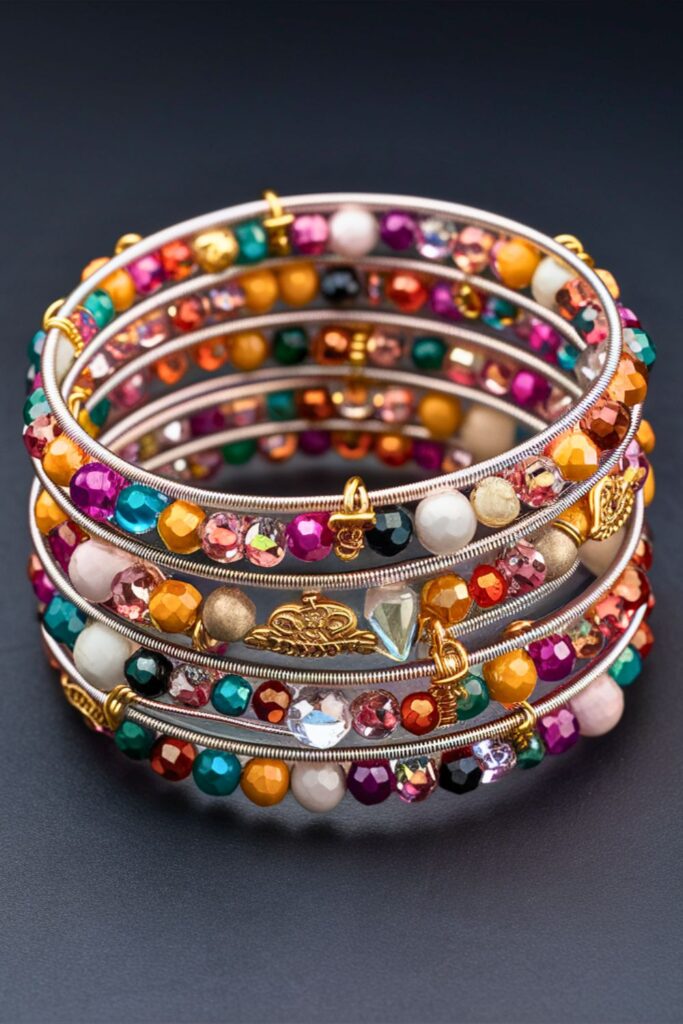 Memory wire bracelets are great for beginners because the wire holds its coiled shape, making it easy to wrap around your wrist multiple times.