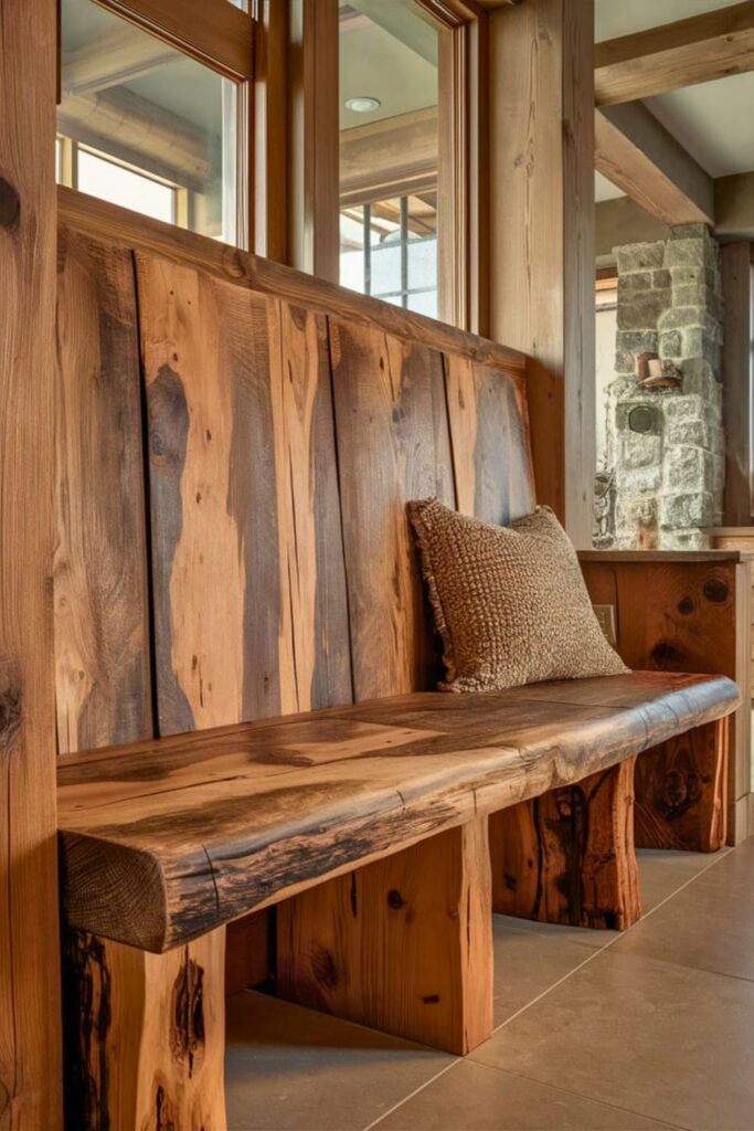 Embrace sustainability with a bench crafted from reclaimed wood. This environmentally friendly option adds unique history and character to your mudroom.