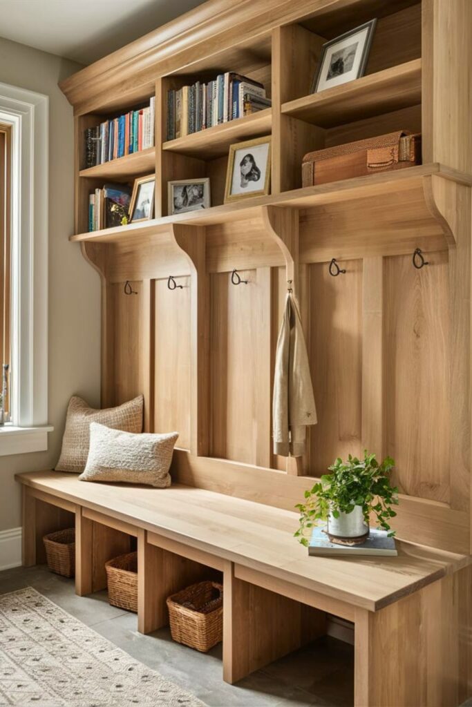 This bench combines functionality with organization, making your mudroom a more efficient space.