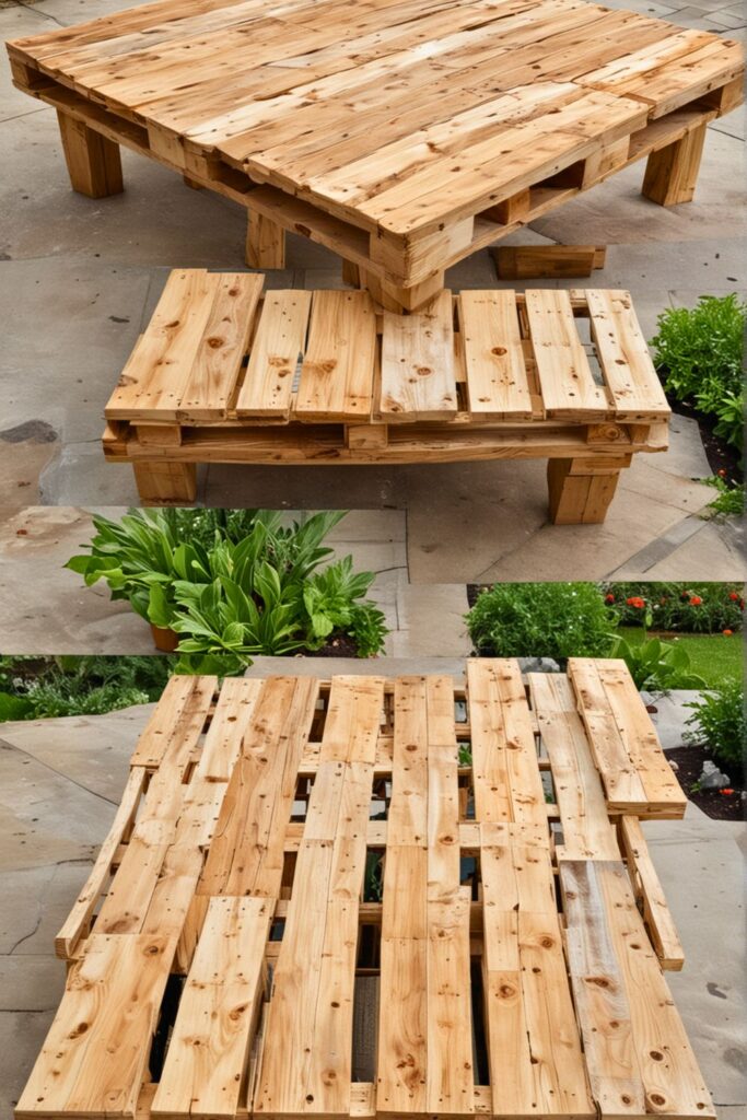 Begin by sanding the wooden pallets meticulously to smooth any rough edges. Measure and cut the pallets to match your desired table size if necessary.